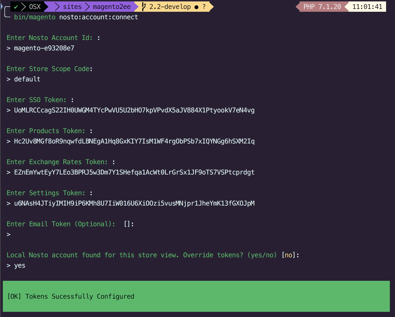 Getting tokens from the Nosto Admin Panel.