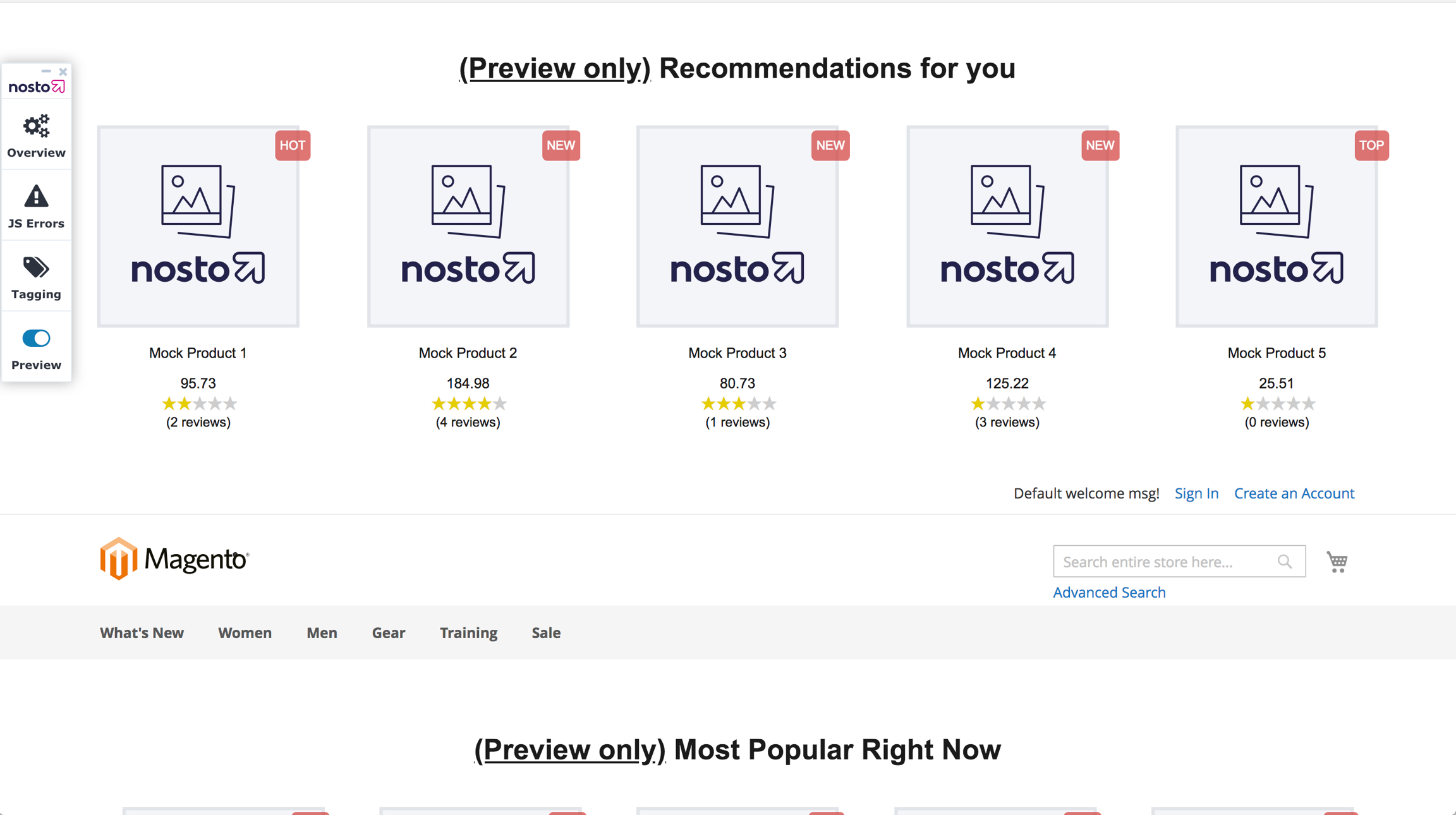 bin/magento deploy:mode:set developerThe preferred method to edit Nosto's block data is by Extending Nosto's Module. However you can also Create a Storefront Child Theme. Notice that by creating a new child theme, all widgets defined in the parent theme will not be inherit by the child theme, you would have to manually recreate all of them.
