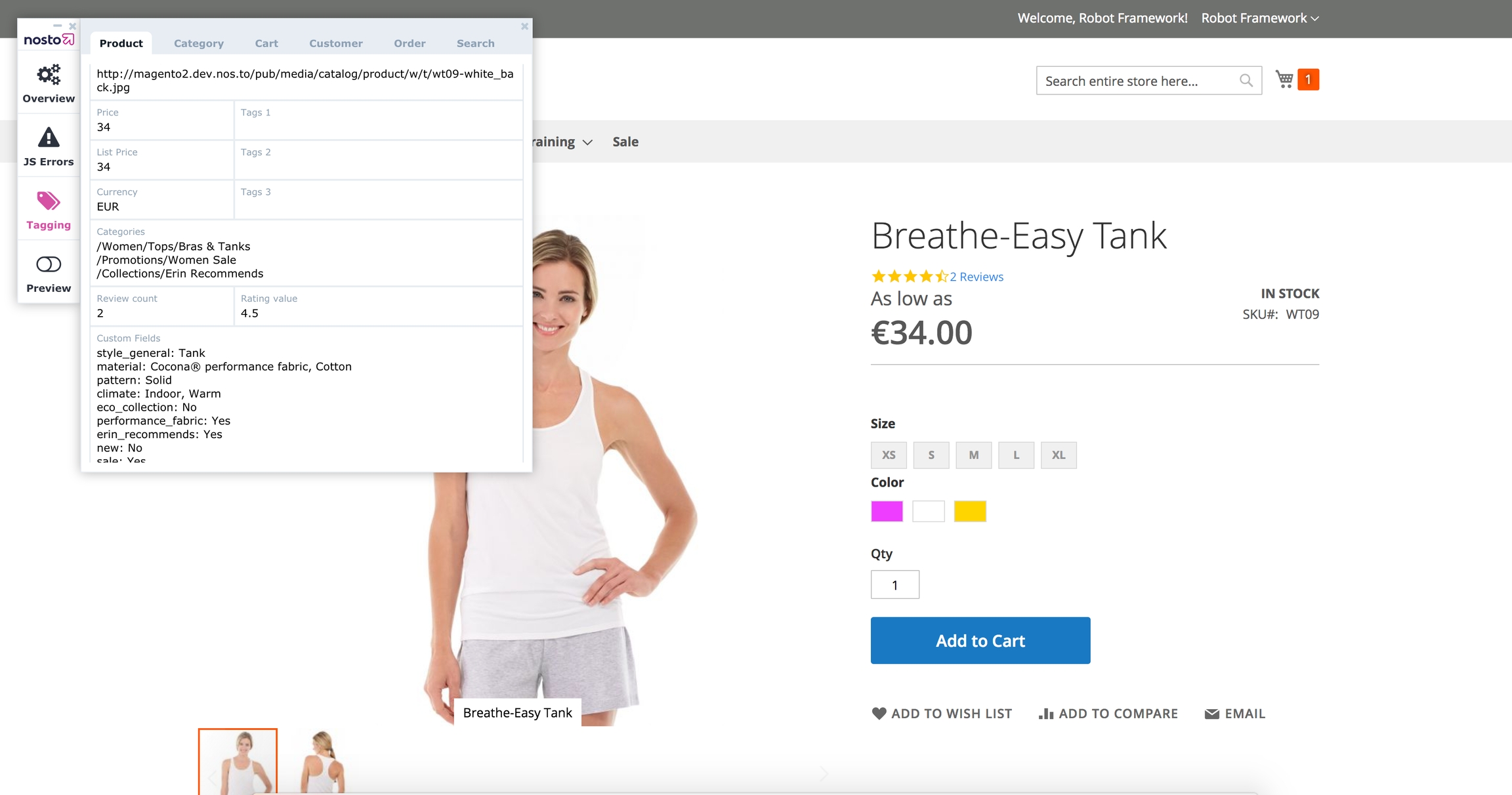 Once you've enabled the rating and reviews metadata, you should be able to see the new product metadata collected by Nosto.