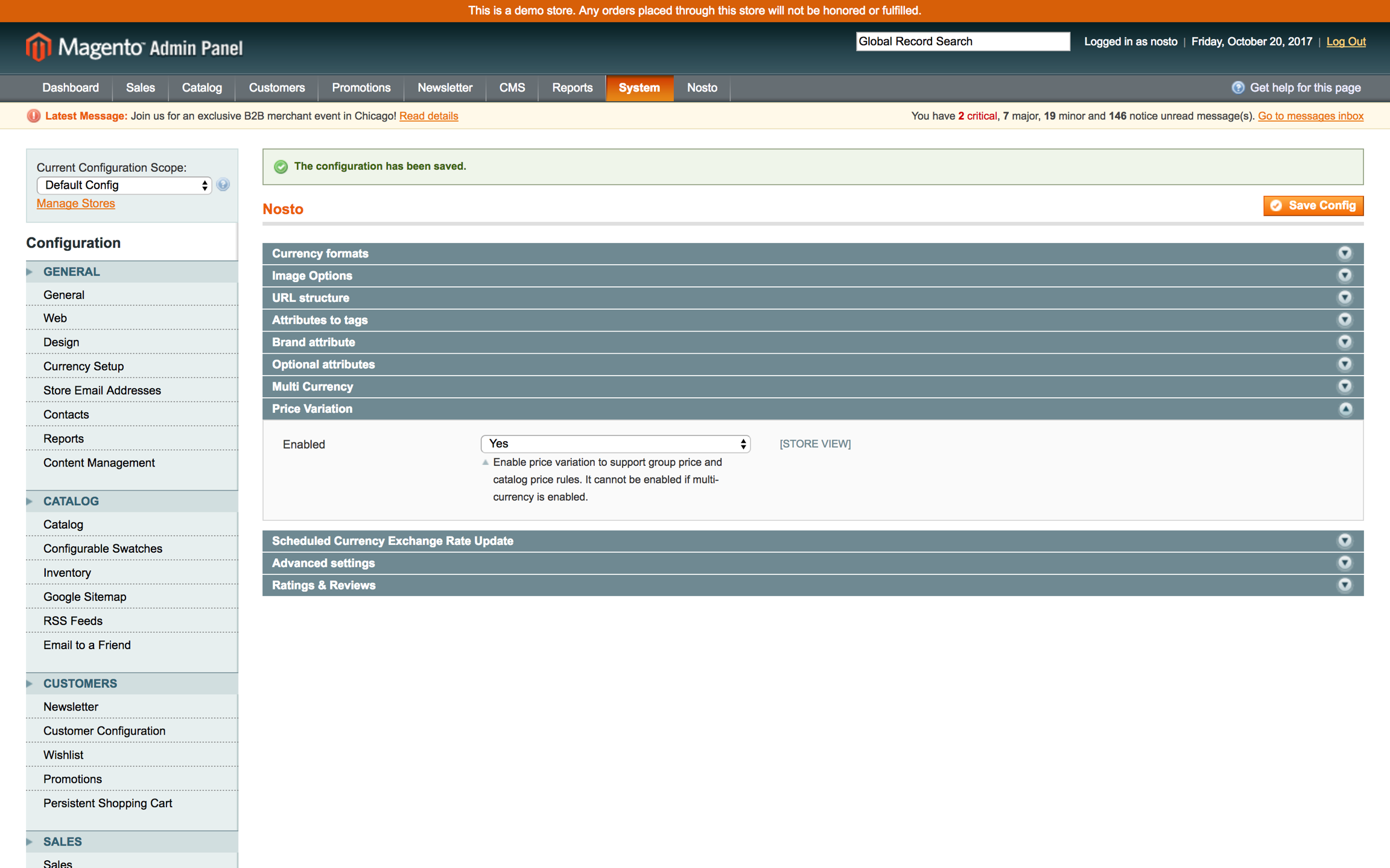Nosto supports pricing for customer-groups. Using the customer-groups feature allows you to change the price and availability of products in recommendations depending upon the customer's group.