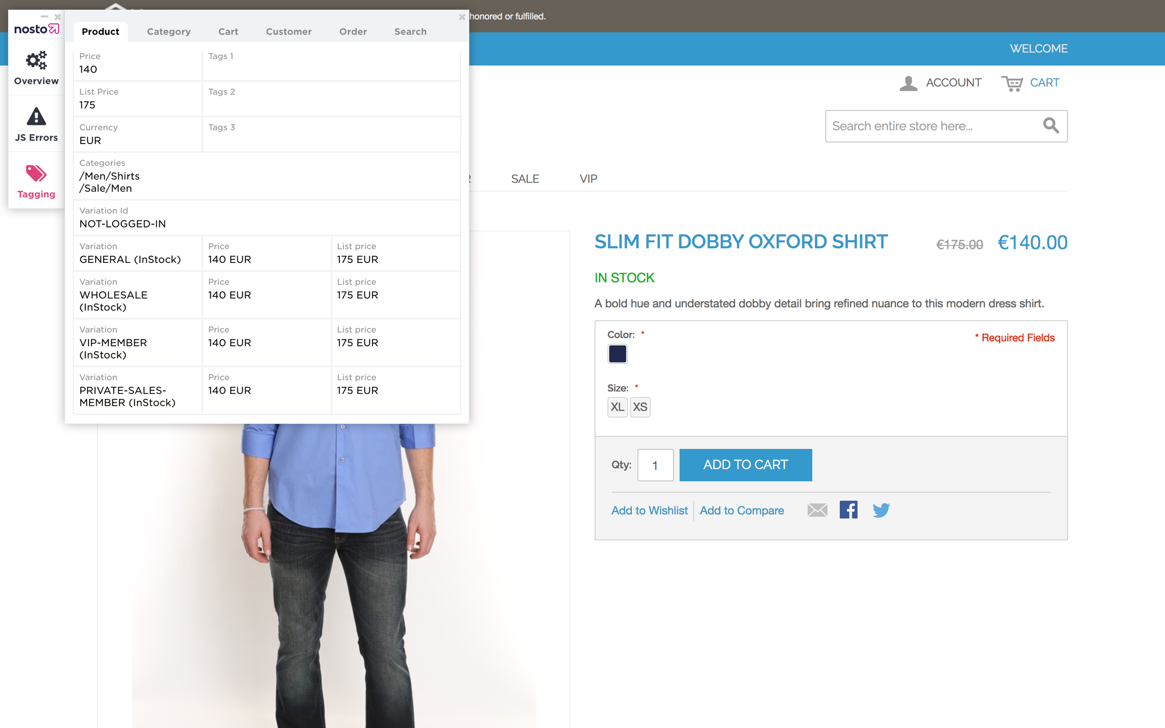 Once you've enabled the customer-pricing group, you should be able to see the new product metadata collected by Nosto.