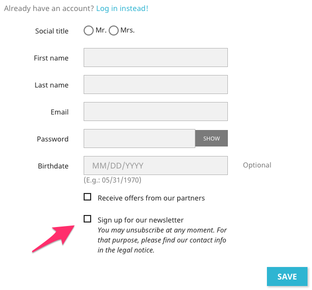 By default Nosto's extension uses Prestashop's newsletter subscription as a source of information for populating this field. In other words, if a customer is also a newsletter subscriber marketing_permission field will be set to true and Nosto considers that the customer has given GDPR compliant marketing permission consent. If a customer is not a newsletter subscriber marketing_permission field will be left empty and Nosto considers that the customer has not given GDPR compliant marketing permission.