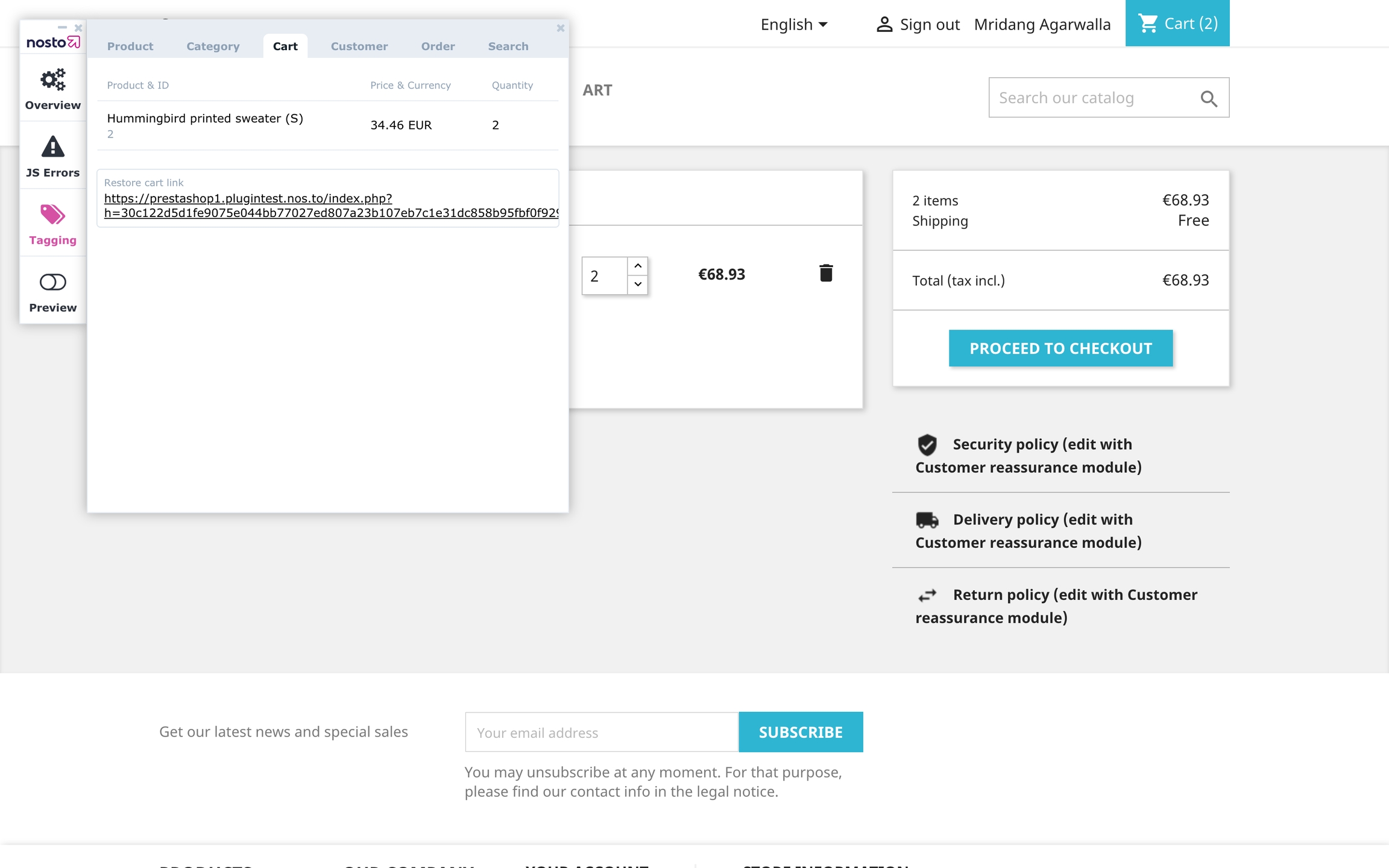 If you have items in your shopping cart and you are logged in, you should be able to see the new restore-cart link collected by Nosto.