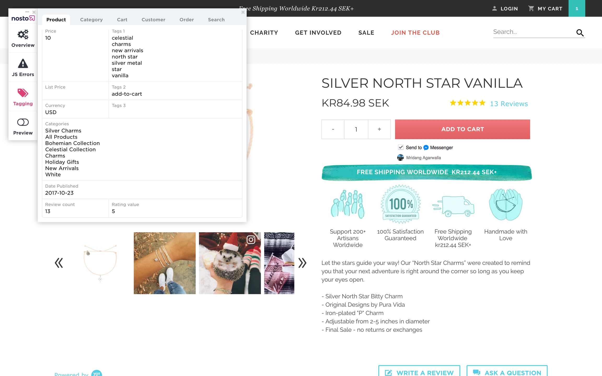 Once you've enabled the rating and reviews metadata, you should be able to see the new product metadata collected by Nosto.