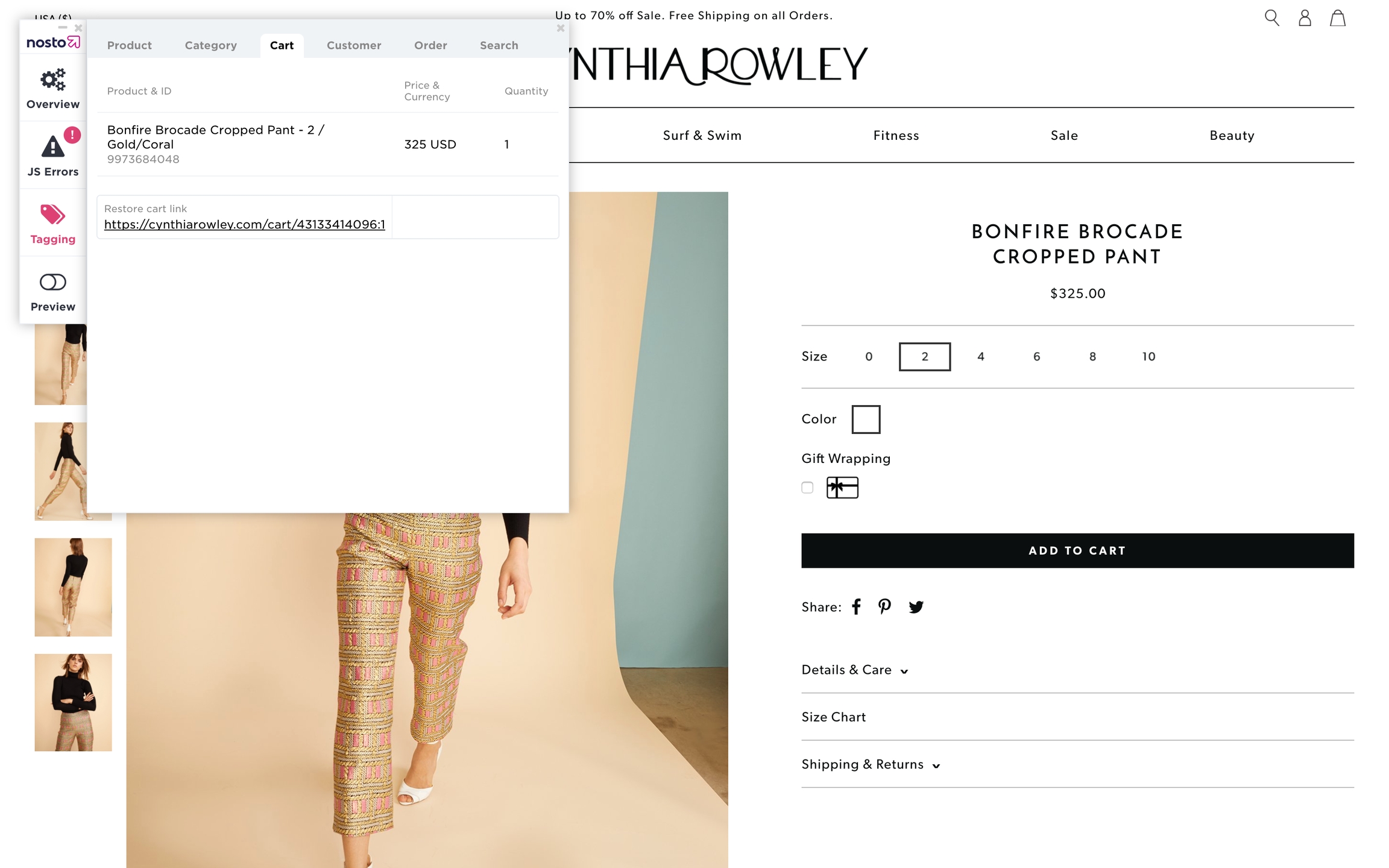 If you have items in your shopping cart and you are logged in, you should be able to see the new restore-cart link collected by Nosto.