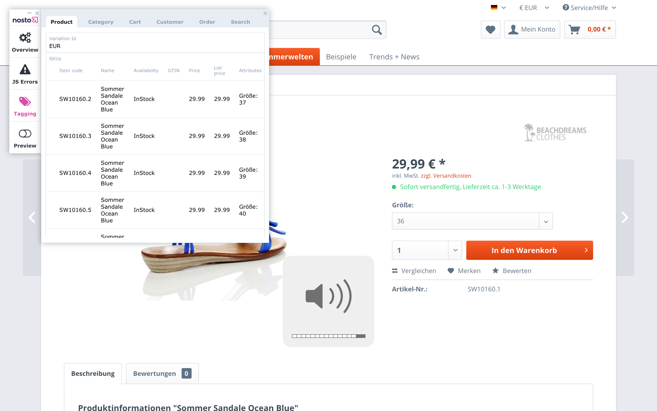 Name: The name of the variant is the normally auto generated by Shopware and is what is used by Nosto. If the name is customised, then the customised name is automatically used.