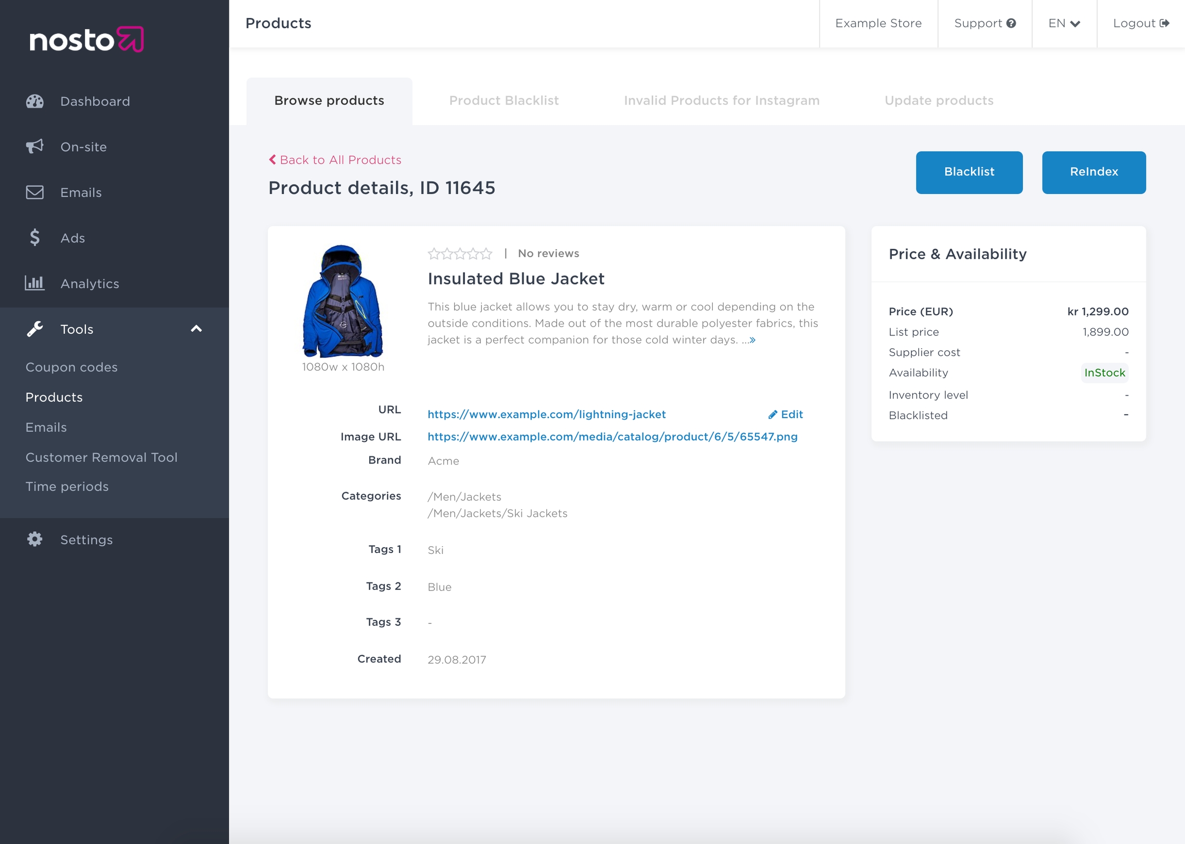 </div>When the entirety of the product metadata is tagged, Nosto is able to crawl your site and build a 1:1 replica of your product catalog but in this basic example, you will need to use an alternative mechanism for synchronising your catalog with Nosto.