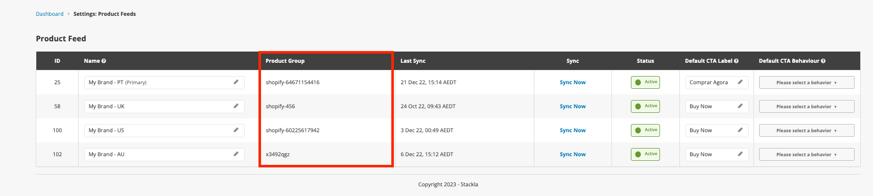 Product Feed Settings