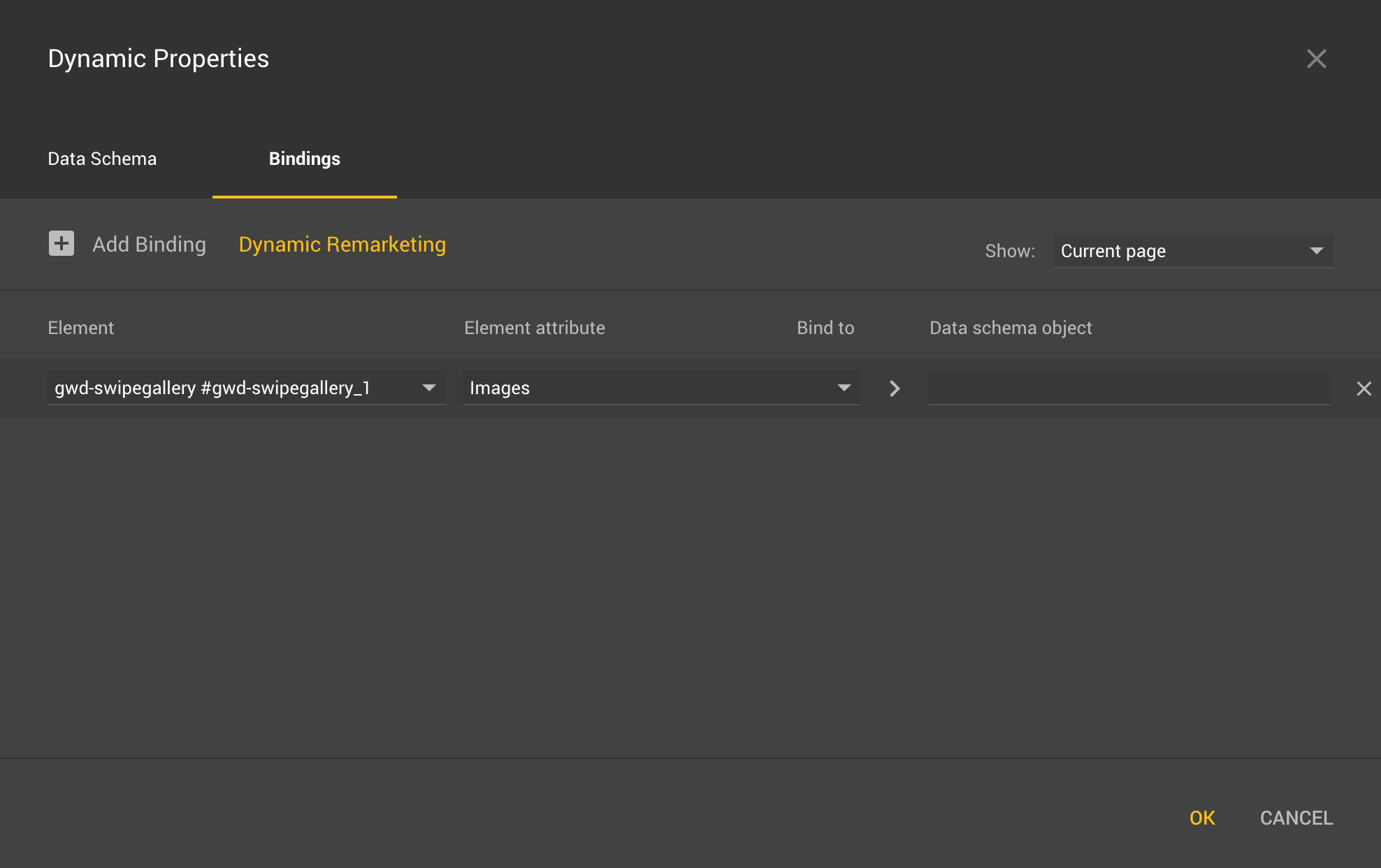 Element refers to both components and any other items added to the Banner display. For the purpose of this guide, we will specify the component gwd-swipegallery #gwd-swipegallery_1.