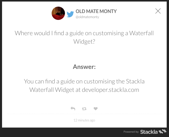To begin, we will need to append the below Custom Javascript to the Widget. This will add both an 'Answer' title to the base of the Tile, plus the relevant response we specified in the data template. It will also only render a Tile, if it has a Data Template response in it, meaning if this information is empty, the Tile won't appear on the Widget, even if it is published.